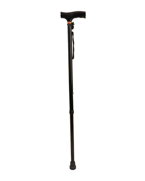 Canne réglable en hauteur en aluminium noir et avec poignée noire.
