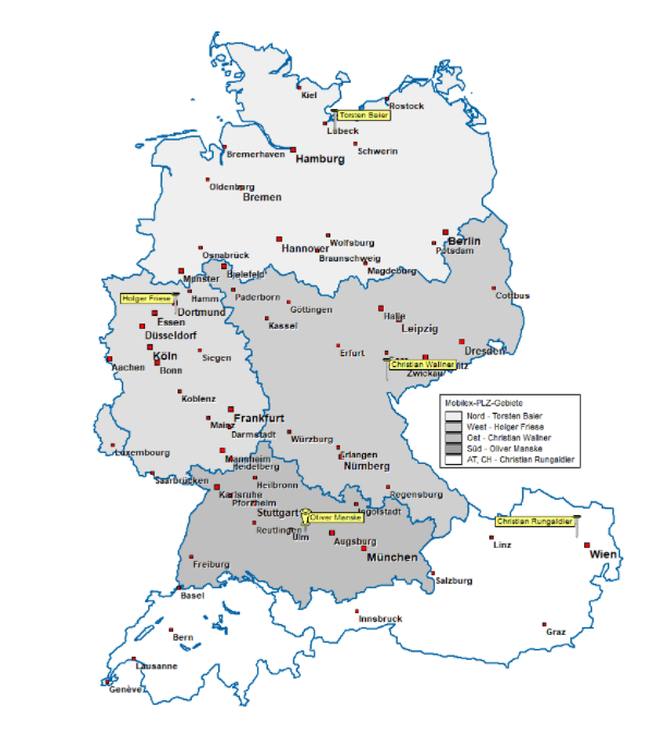 Salgsområde: Tyskland for følgende områder: ZIP 0-09999, 15-15999, 33-34999, 36-37999 og 90-99999